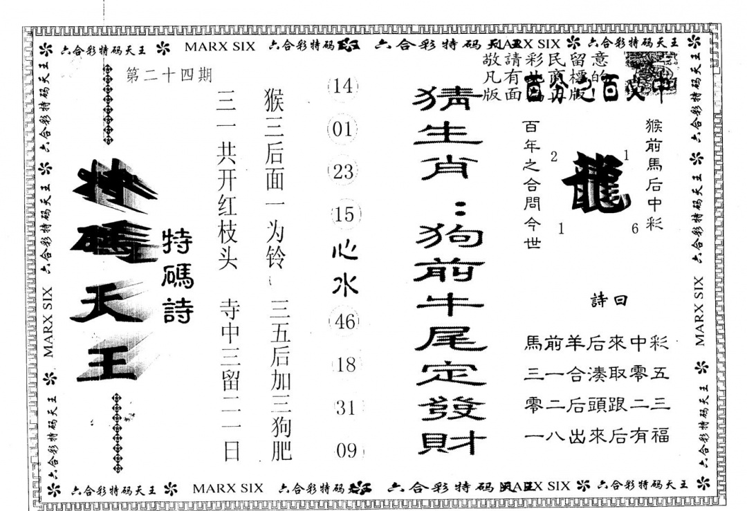 另版曾道人特码诗