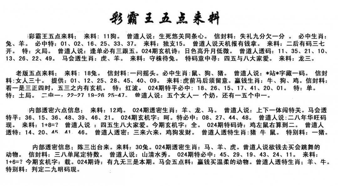 五点来料